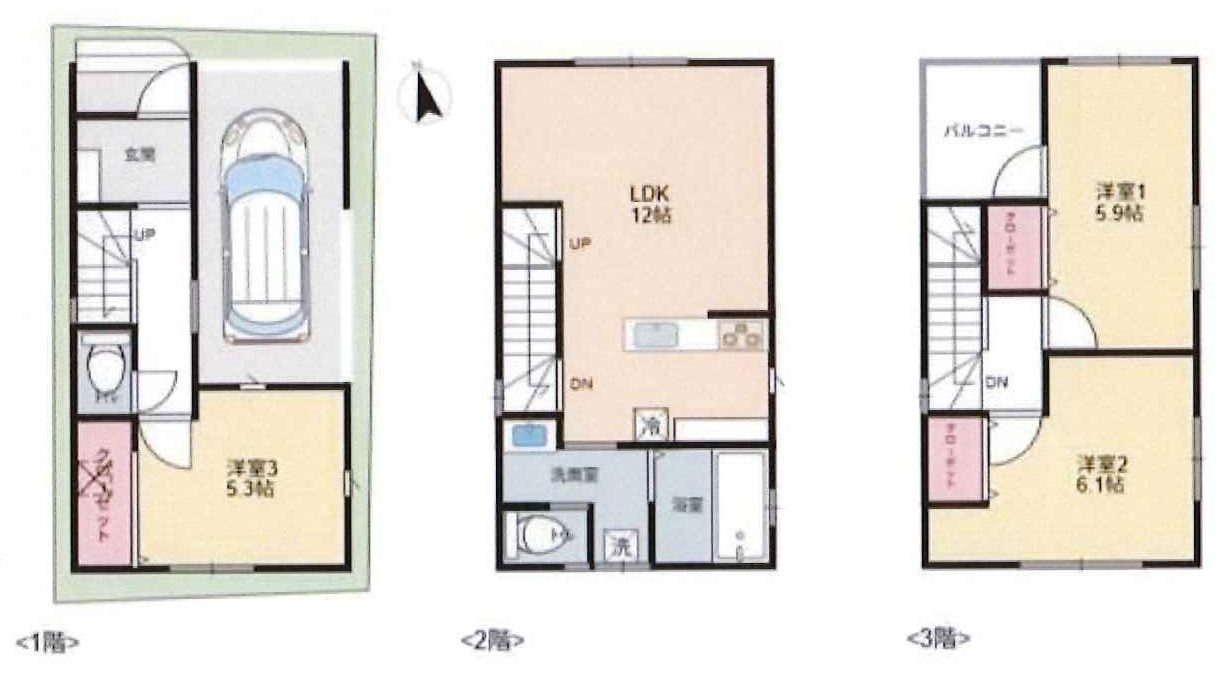 | 間取 | 3LDK (LDK12帖、洋室6.1帖、洋室5.9帖、洋室5.3帖) | ||