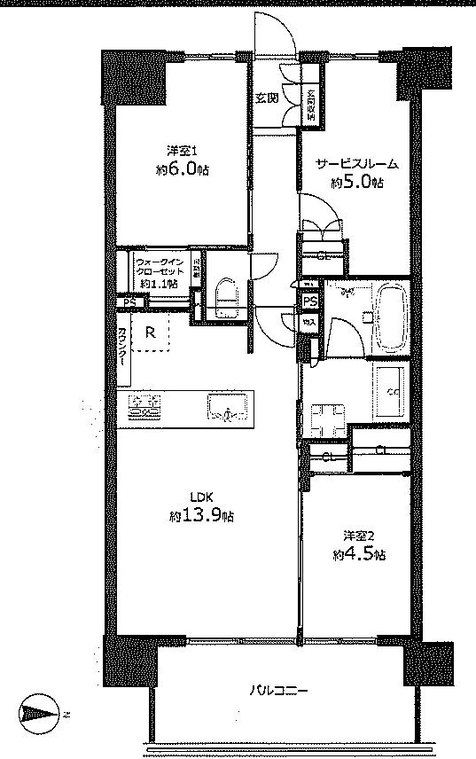| 間取 | 2SLDK (LDK13.9帖、洋室6帖、洋室4.5帖、S5帖) | ||